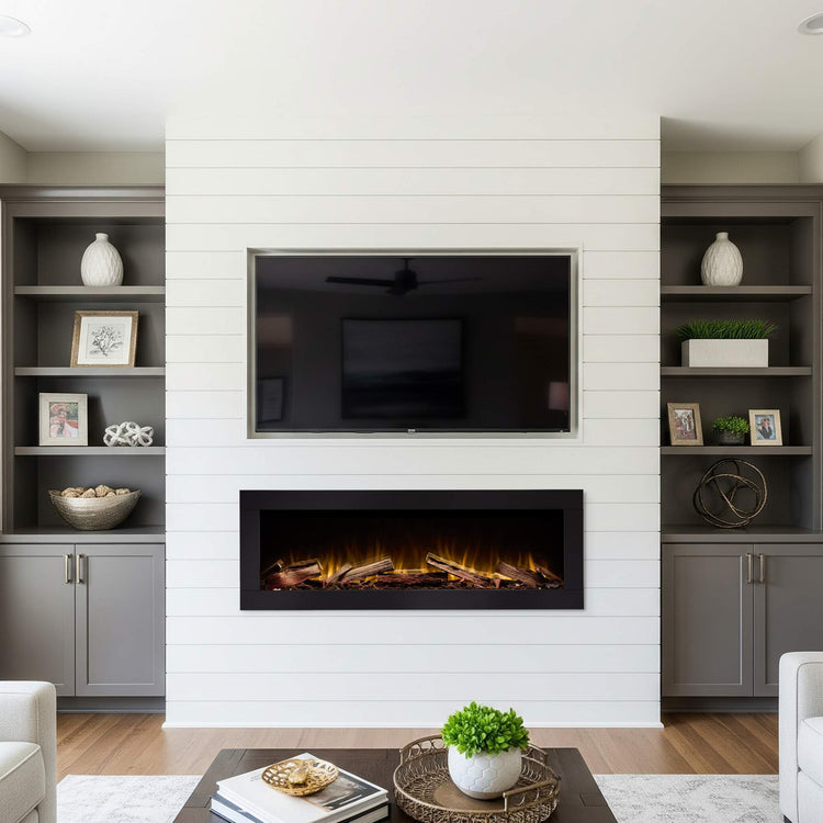 Finish your install with whichever wall material you like, then plug the fireplace in and slide it into place. For more information on the install process, see our documentation.