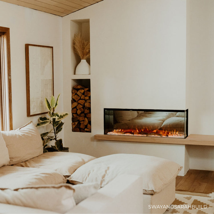 The Beckler Abode living area is transformed with a DIY fireplace installation. See how they achieved a traditional look and feel with the Ambe Square30 Fireplace…